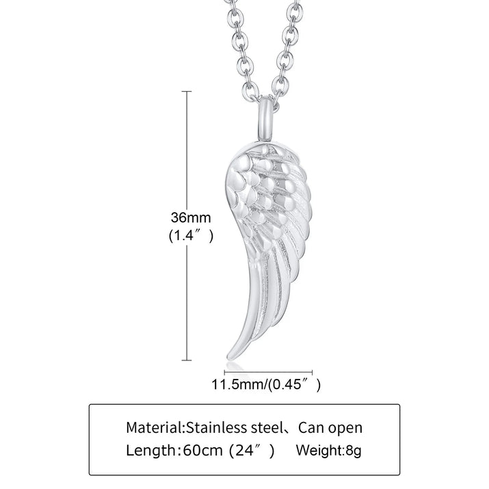 The Wings of Memory Necklace is a beautifully crafted keepsake designed to hold what matters most close to your heart. Made from premium stainless steel, this angel wing pendant serves as a discreet urn, perfect for keeping ashes, perfume, or essential oils. A timeless and elegant way to honor love, remembrance, or personal meaning.