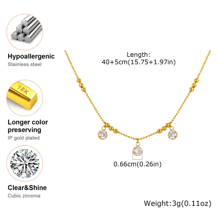 A radiant fusion of timeless beauty and modern elegance. This golden bead chain necklace is adorned with three brilliant zircon stones that dance with light, creating a sophisticated sparkle. Designed to elevate any outfit, it’s the perfect piece for special occasions or everyday elegance.