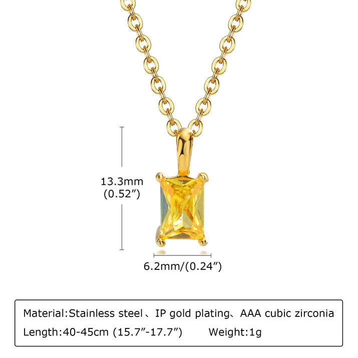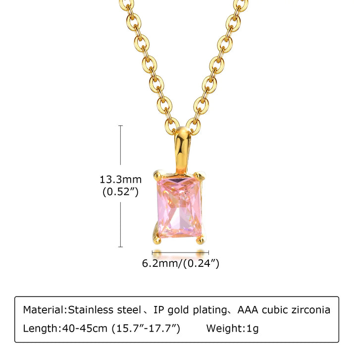 The Éclat Pendant Necklace is a timeless statement of refined elegance. Featuring a radiant rectangular-cut CZ stone set in a sleek gold-plated frame, it effortlessly catches the light for a touch of everyday luxury. Crafted with durable stainless steel and available in four dazzling colors, this piece is perfect for layering or wearing solo.