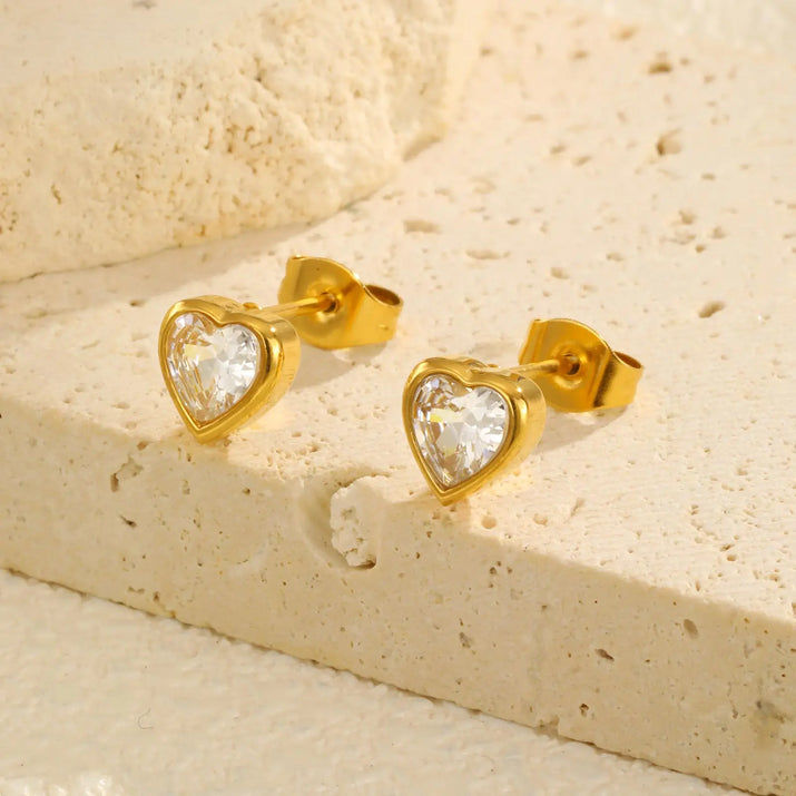 Delicate and radiant, the Cœur Brillant Studs bring timeless elegance to everyday wear. Featuring a luminous heart-shaped zircon stone framed in a polished gold-plated setting, these earrings reflect light beautifully for a soft, romantic sparkle. Perfect for both minimal chic looks and sophisticated occasions.